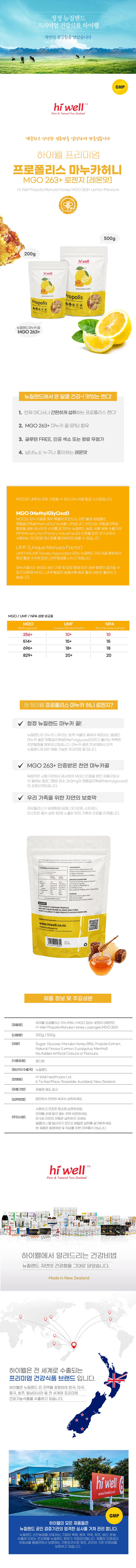 > 하이웰 프로폴리스 레몬 & 마누카허니 로젠지 200g 5개